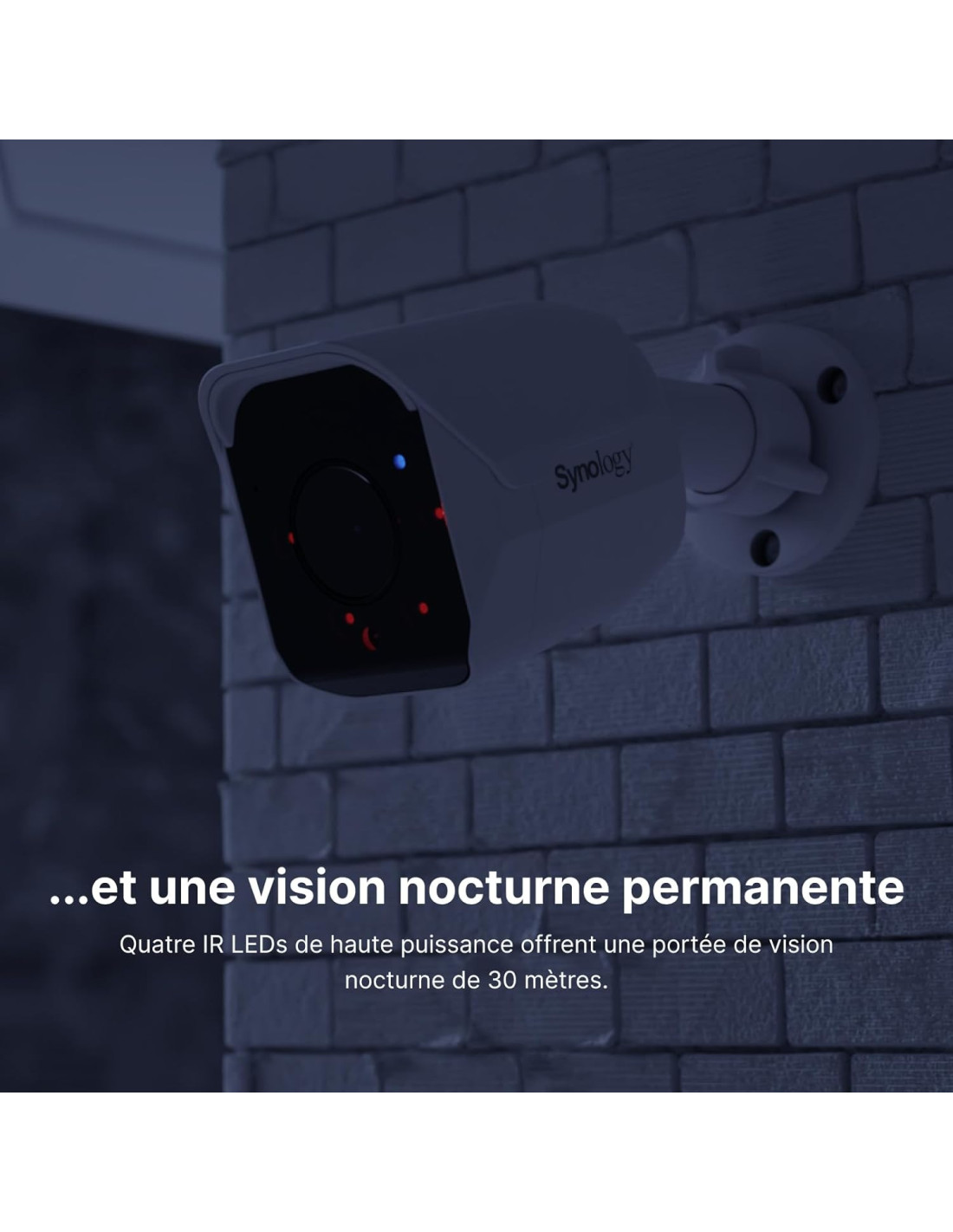 - Vidéo nette, nuit et jour : capteur 5 MP avec objectif grand angle, enregistrement à 30 fps et LED IR haute puissance pour 30 mètres de vision nocturne
