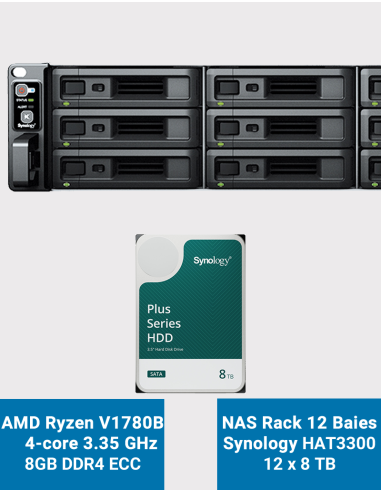 - 12 disques Synology HAT3300 8To (Garantie constructeur 3 ans)