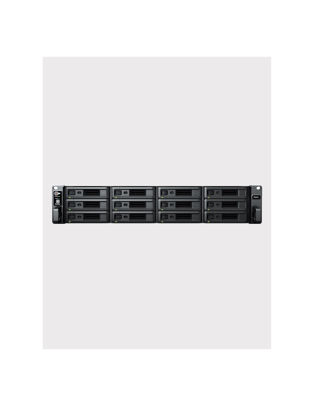 • 12 baies SATA HDD/SSD de 2,5″/3,5″, extensible à 24 baies avec une unité d’extension Synology RX1223(RP)