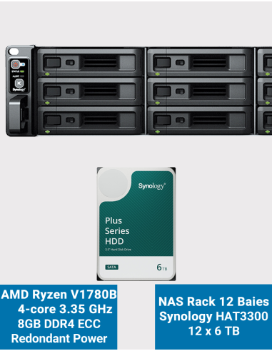 - 12 disques Synology HAT3300 6To (Garantie constructeur 3 ans)