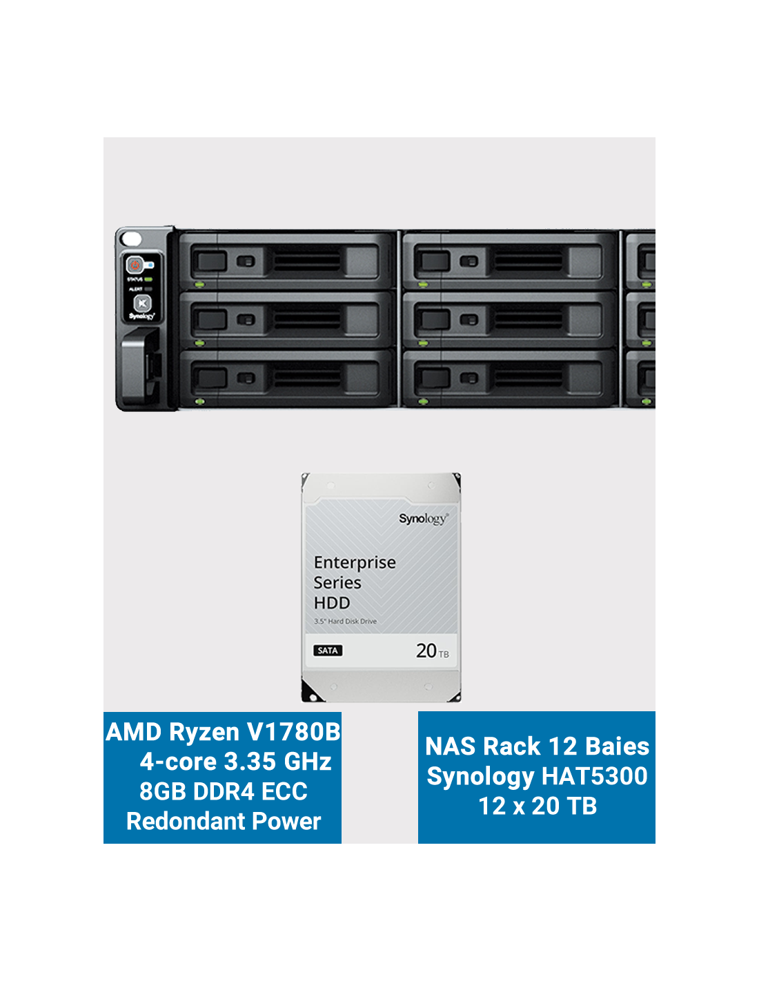 - 12 disques Synology HAT5300 20To (Garantie constructeur 5 ans)