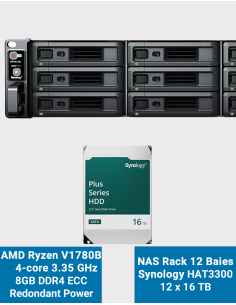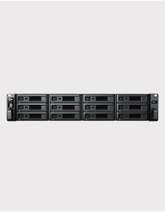 • 12 baies SATA HDD/SSD de 2,5″/3,5″, extensible à 24 baies avec une unité d’extension Synology RX1223(RP)