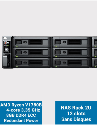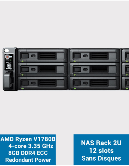 NAS Rack 2U 12 baies - Capacité maximum interne 216 To - Mémoire 8Go extensible à 32Go (16Go+16Go)
