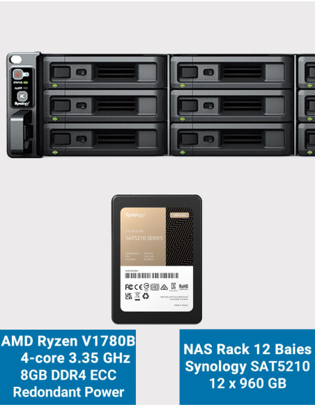 - 12 disques SSD Synology SAT5210 960Go (Garantie constructeur 5 ans)