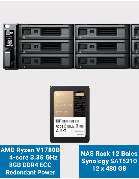 - 12 disques SSD Synology SAT5210 480Go (Garantie constructeur 5 ans)