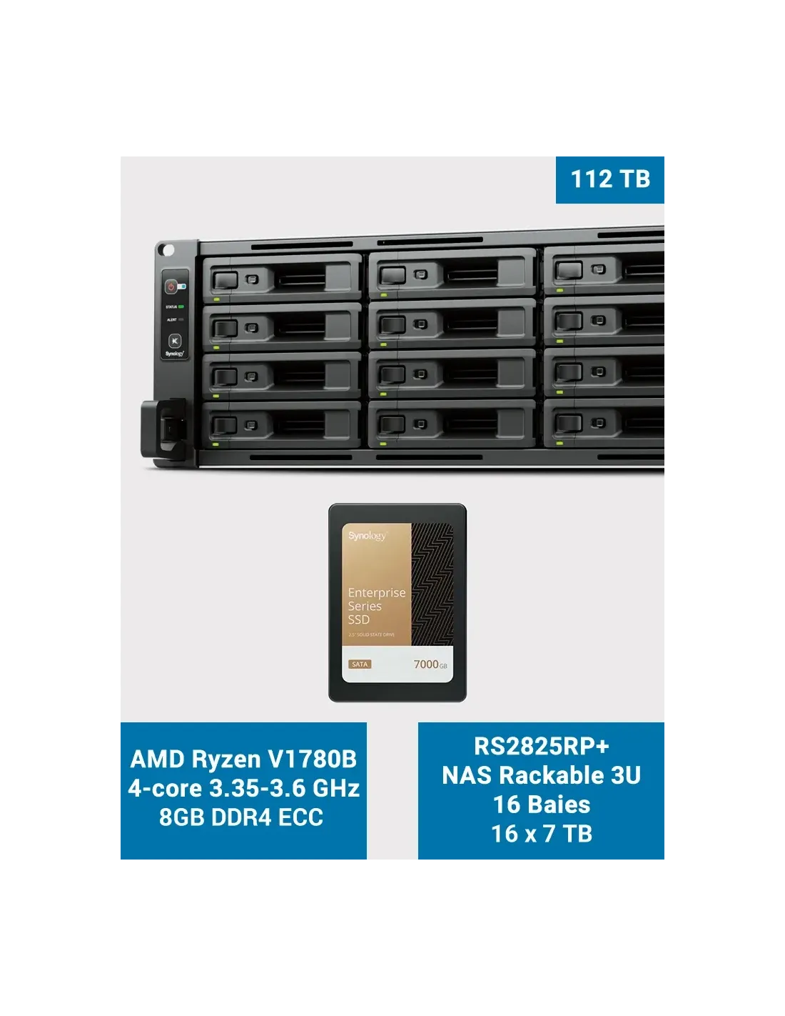 Synology RS2825RP+ – NAS rack 16 baies avec 16 × SSD SAT5200-7000G (112 To brut)