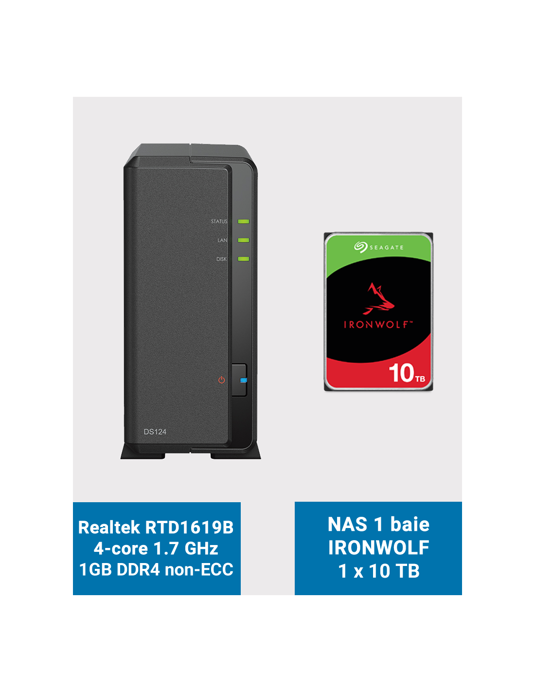 Synology DiskStation DS124 Serveur NAS IRONWOLF 10To (1x10To)
