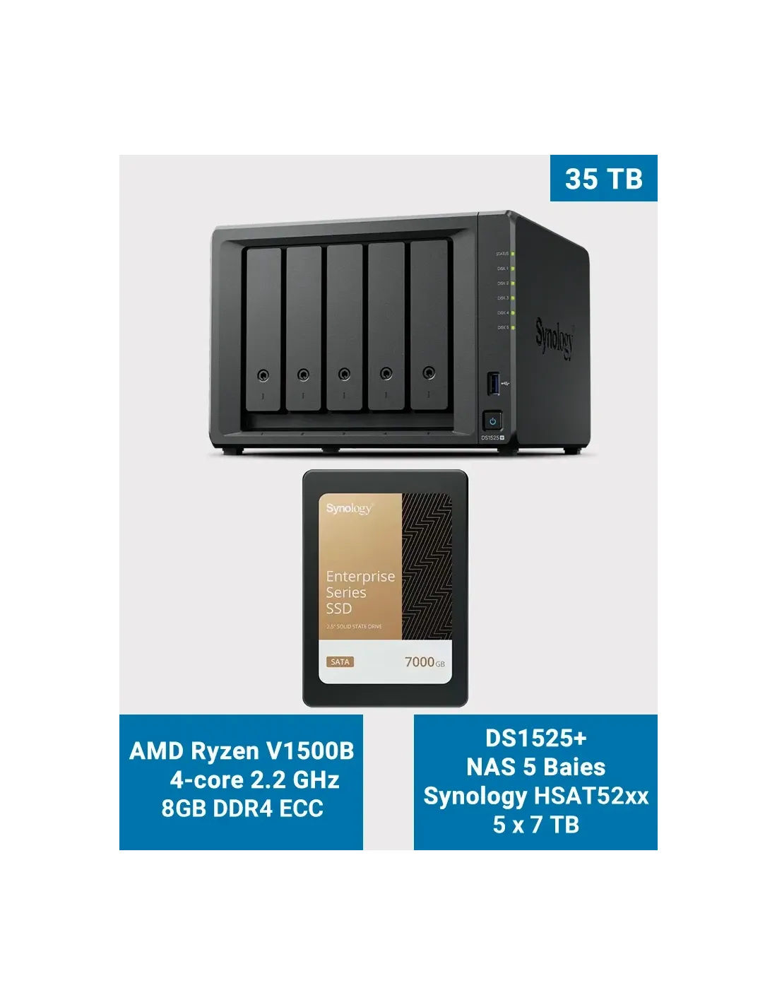 Synology DS1525+ NAS 5 bahías con 5×7 TB SSD SAT5200 – 35 TB