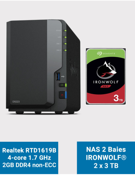 - DS223 NAS Tour 2 emplacements 3,5" et/ou 2,5" (Garantie constructeur 2 ans)