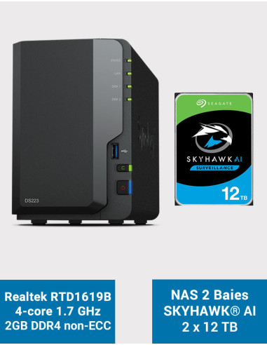 SYNOLOGY DiskStation DS223 Capacité de 24To pour système de vidéosurveillance