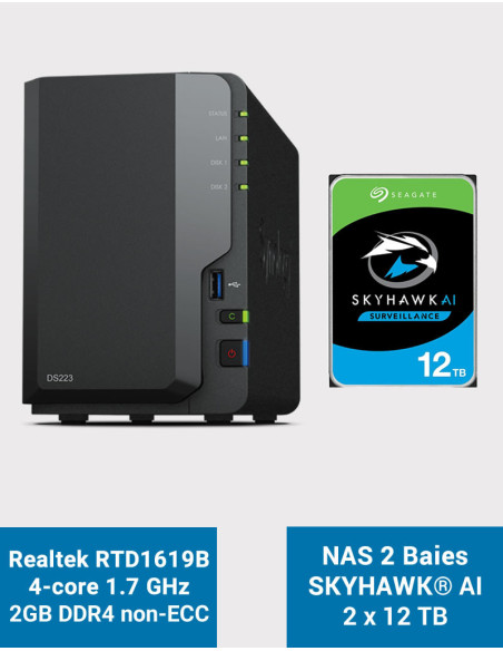 SYNOLOGY DiskStation DS223 Capacité de 24To pour système de vidéosurveillance