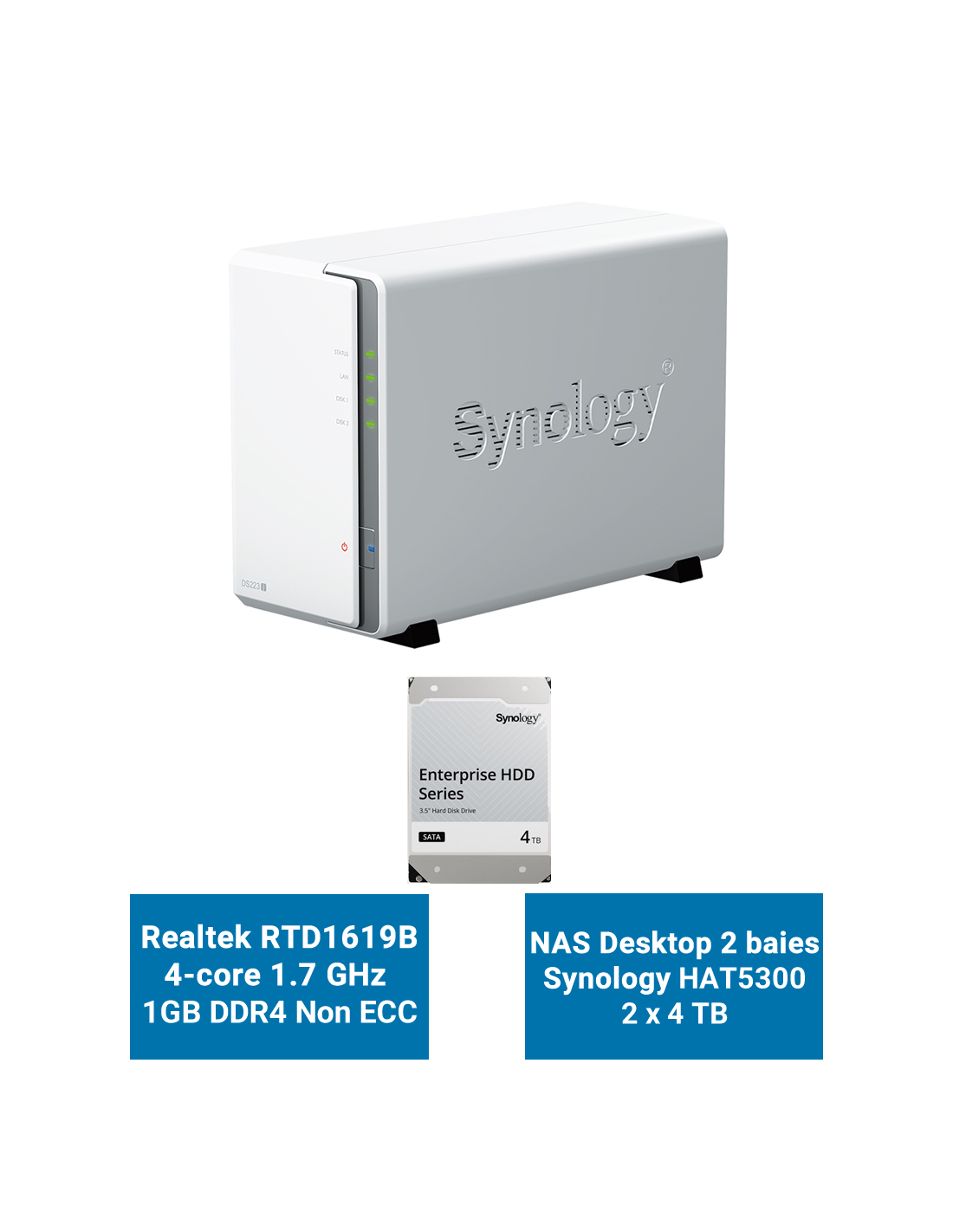 - 2 disques Synology HAT5300 4To (Garantie constructeur 5 ans)