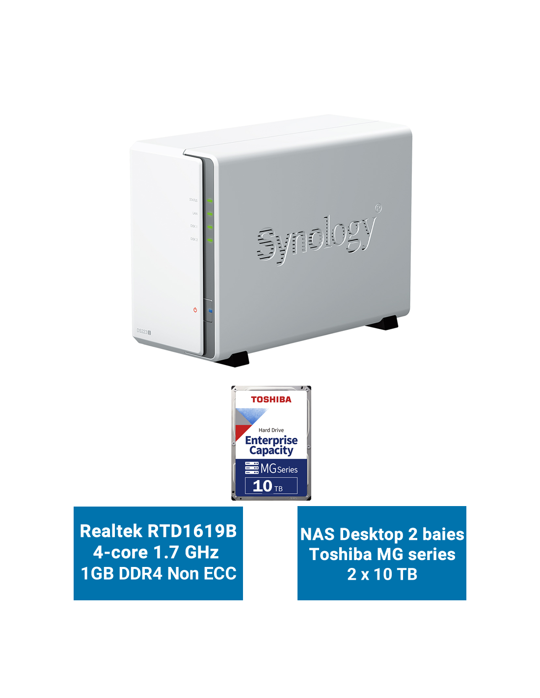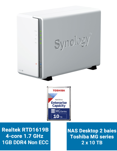 Synology DiskStation DS223J Serveur NAS Toshiba MG series 20To (2x10To)