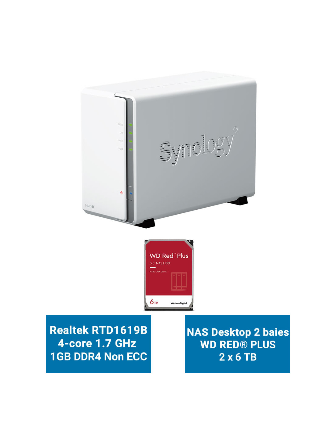 Synology DiskStation DS223J Serveur NAS WD RED PLUS 12To (2x6To)