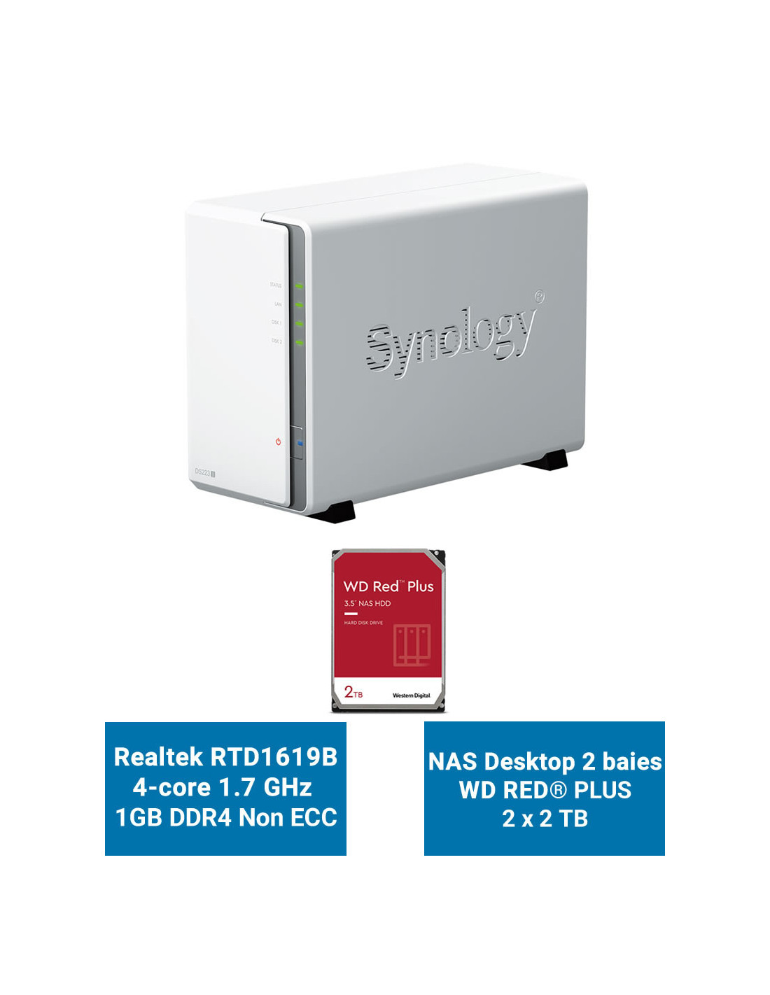 Synology DiskStation DS223J Serveur NAS WD RED PLUS 4To (2x2To)