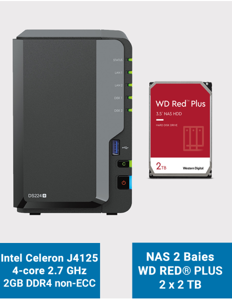 Synology DiskStation DS224+ 2Go Serveur NAS WD RED PLUS 4To (2x2To)