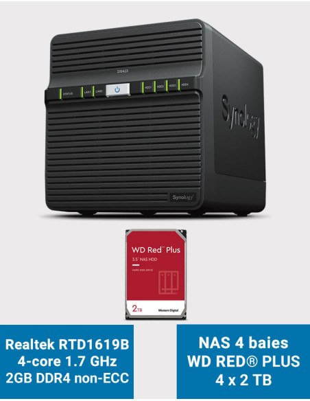 - DS423 2GB NAS Tour 4 emplacements 3,5" et/ou 2,5" (Garantie constructeur 2 ans)