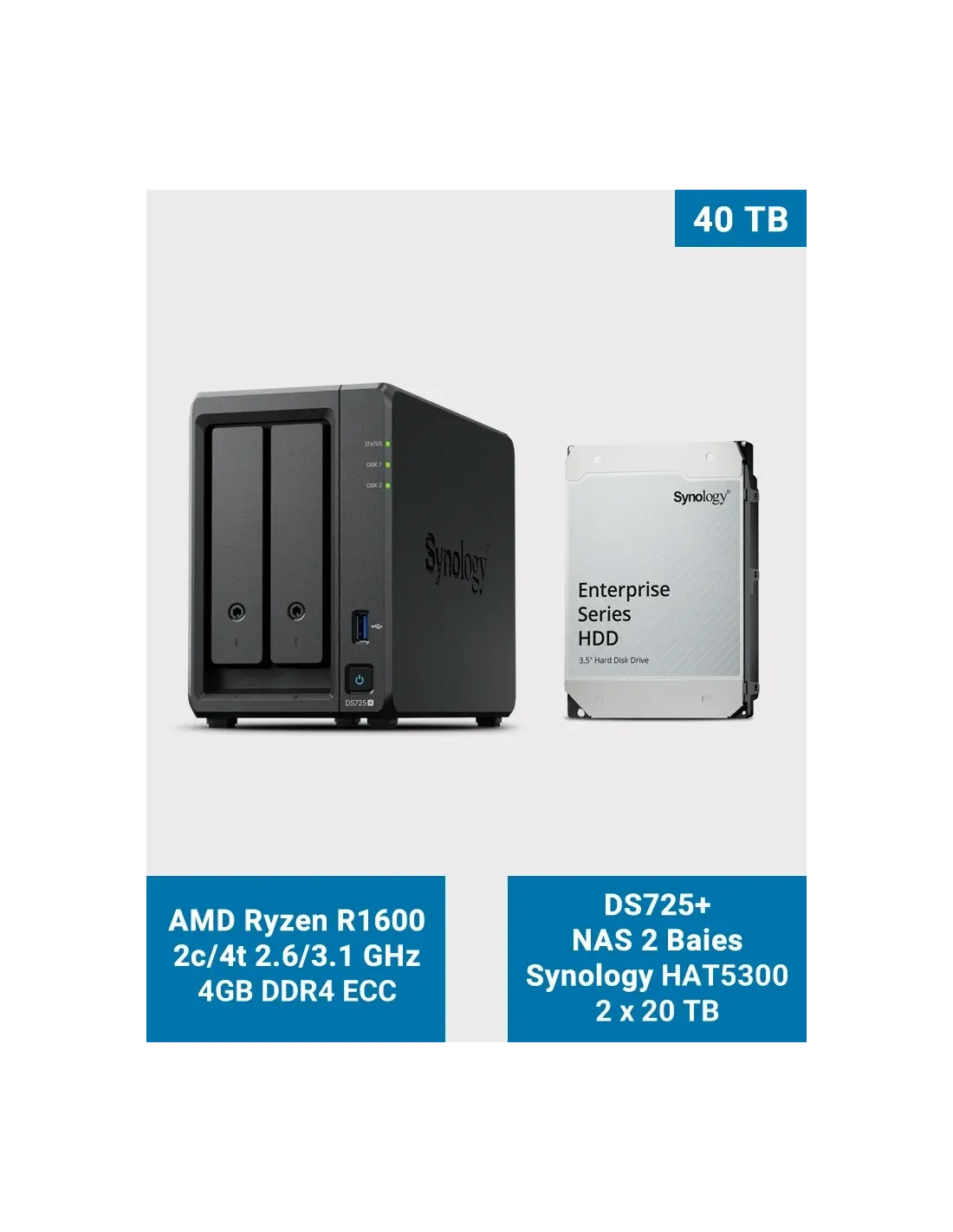 Synology DS725+ NAS 2 baies avec 2×20 To HAT5300 – 40 To