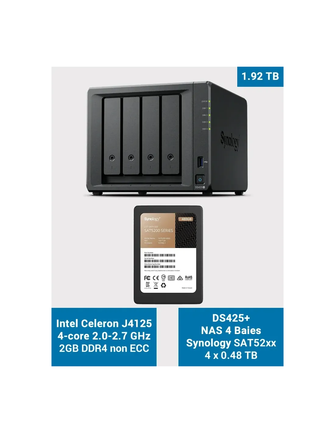 Synology DS425+ – NAS 4 baies avec 4 × SAT5210 480 Go (1,92 To)