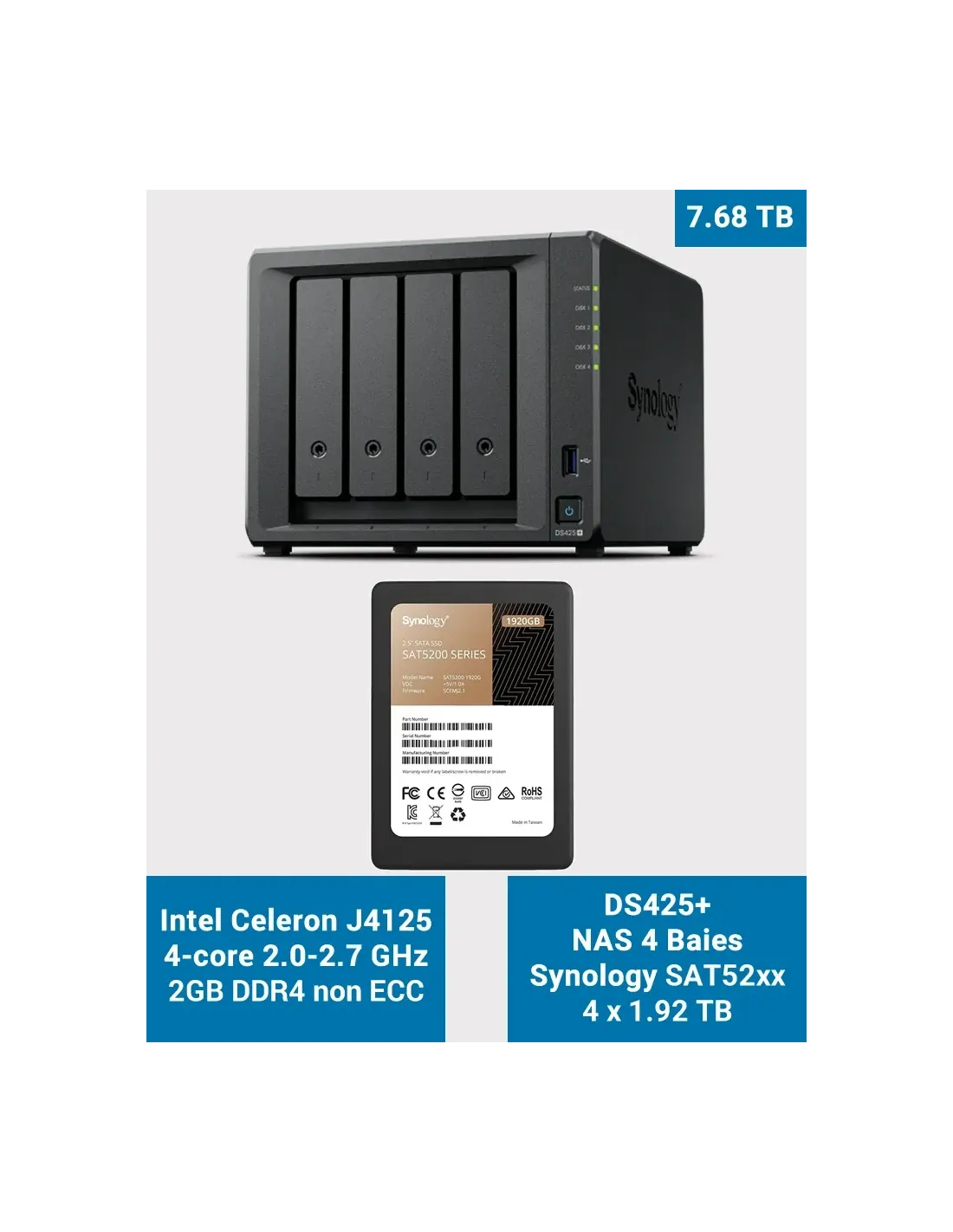 Synology DS425+ – NAS 4 baies avec 4 × SAT5210 1,92 To (7,68 To)
