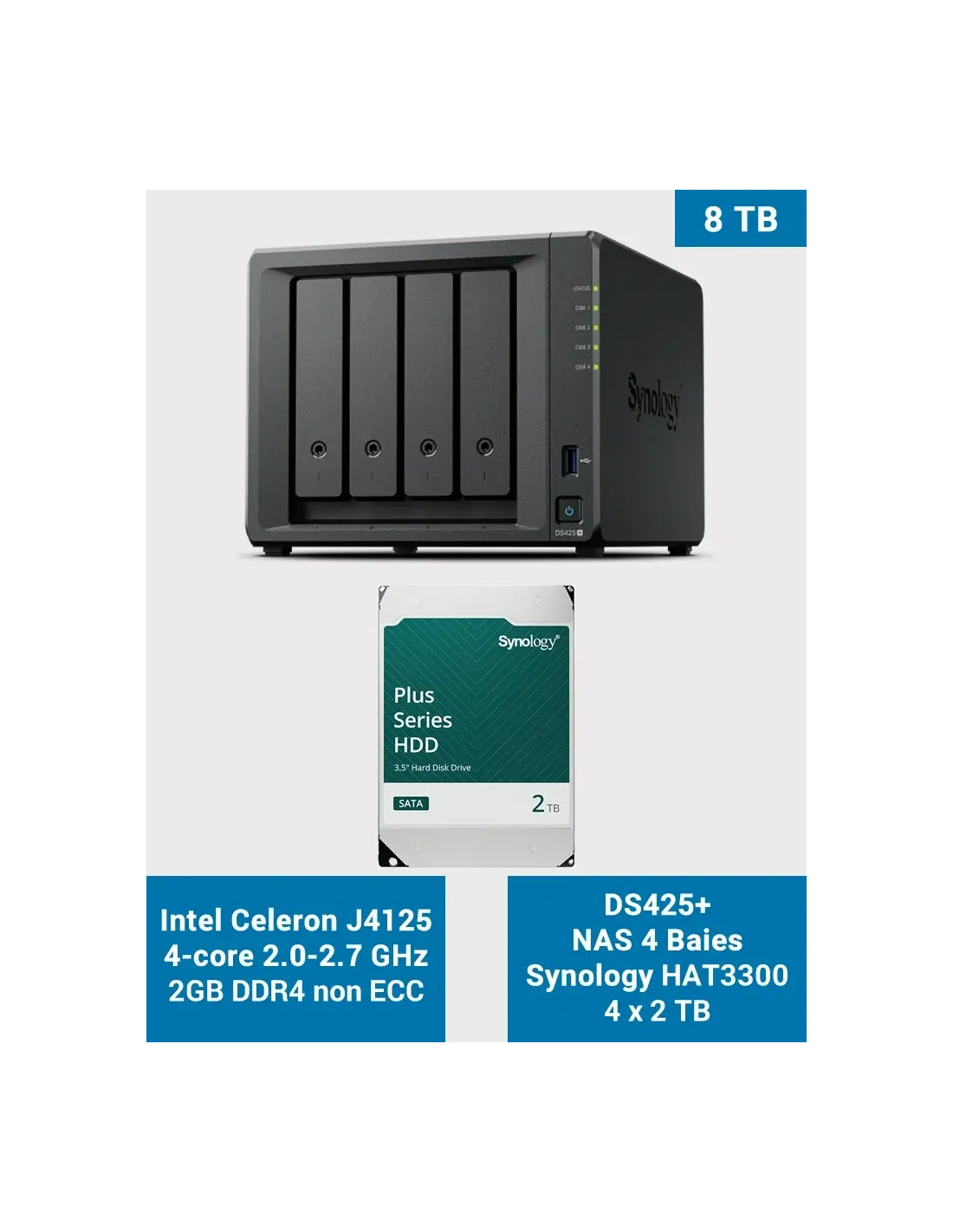 Synology DS425+ – NAS 4 baies avec 4× HAT3300 2 To (8 To)