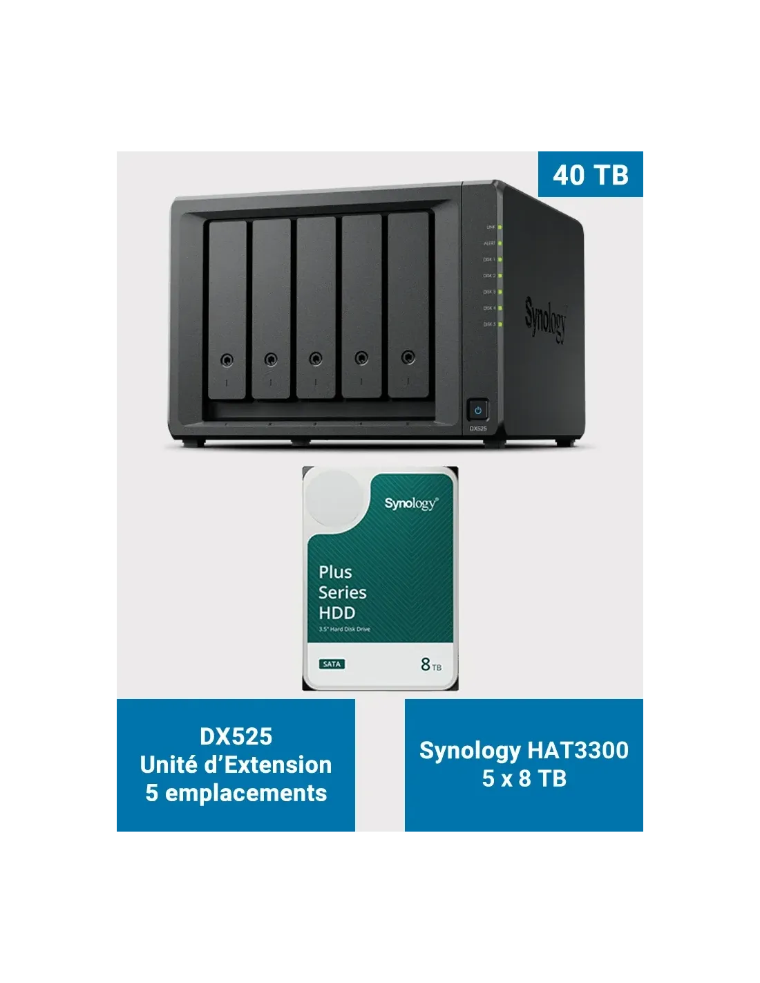 Synology DX525 – 5× HAT3300 8 To (40 To) – Unité d’expansion 5 baies