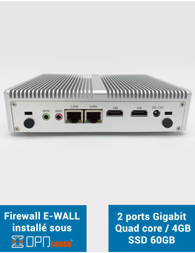 Le boitier comporte 2 Gigabit Ethernet ports, a powerful Celeron N3150 processor, supports AES-NI, and can be equipped with 2, 4 or 8 GB of RAM to accommodate all the additional memory-consuming OPNsense® functions such as pfBlockerNG. The capacities of the Firewall E-WALL EG2x box allow the installation of pfSense®, Untangle®, OPNsense®, IPFire, IPCOP, Windows 10, Linux, …