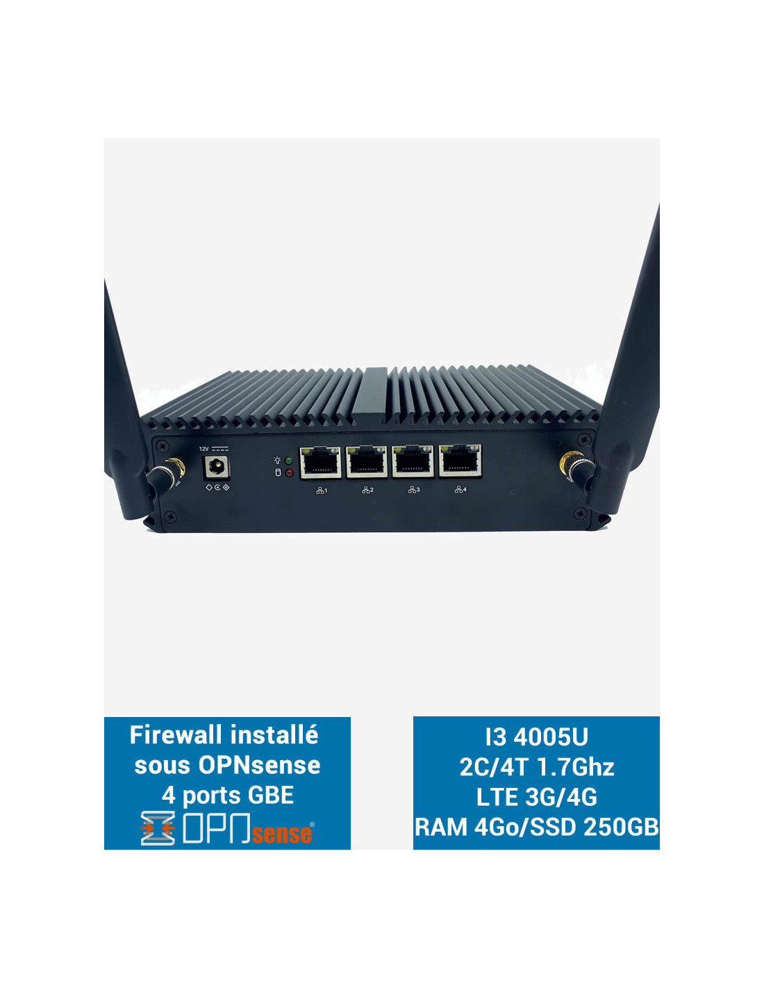 Firewall OPNsense Q3x I3 4005U 2 Gigabit ports LTE 4G 4GB SSD 250GB