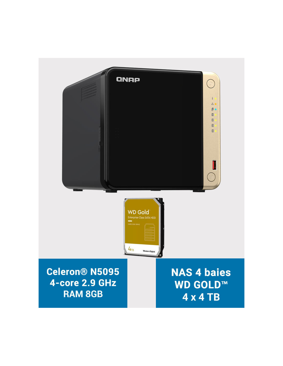 QNAP TS-464 8GB NAS Server 4 bays WD GOLD 16TB (4x4TB)