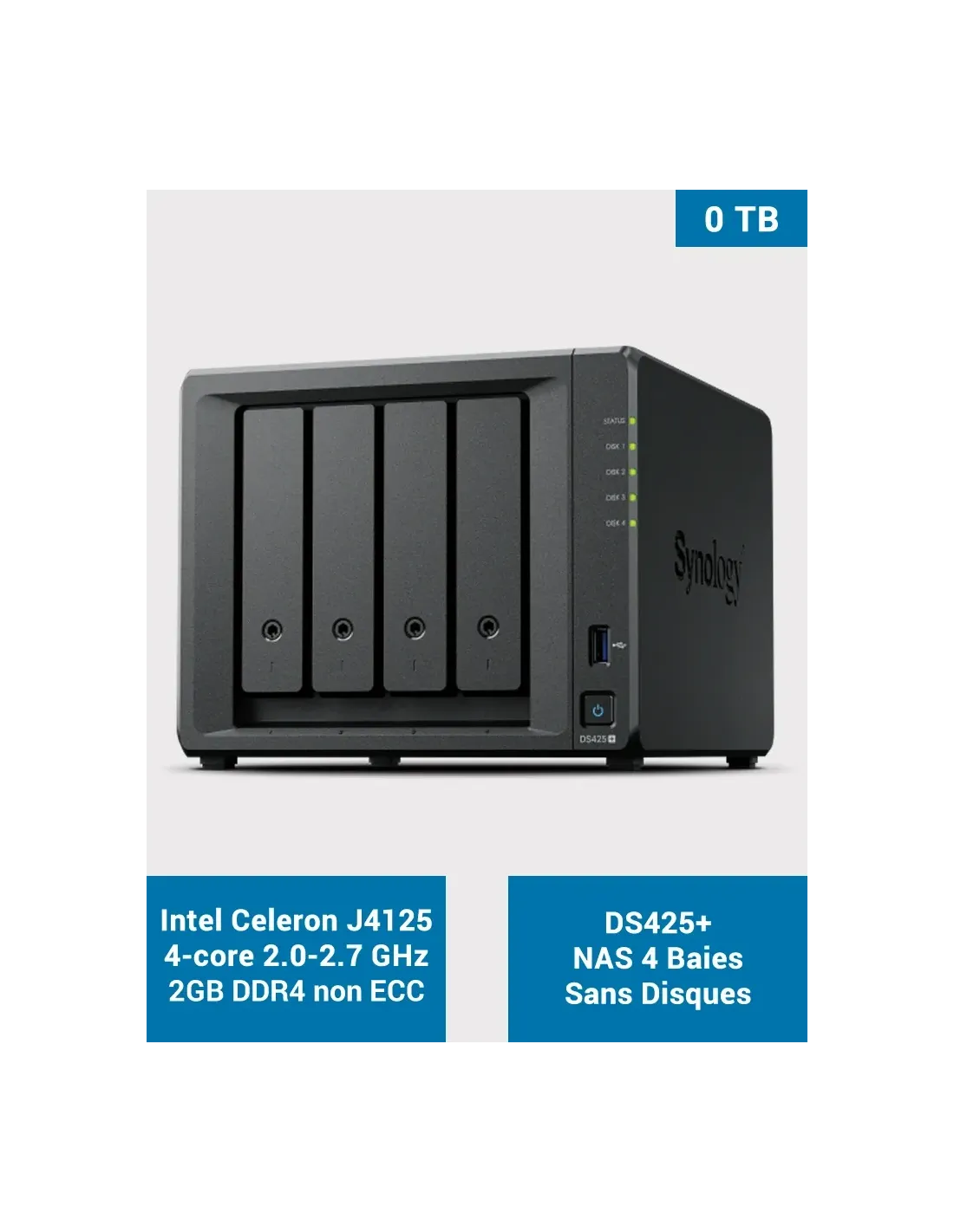 The Synology DS425+ is a 4-bay NAS (diskless), designed for demanding users, freelancers, and small businesses needing compact, reliable, and centralised storage.